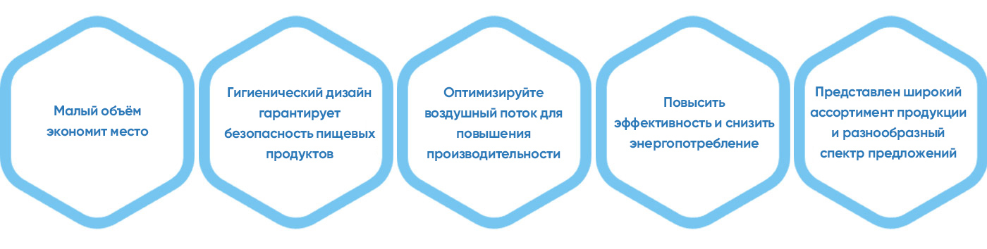 Двухспиральный аппарат шоковой заморозки оснащен многослойной спиральной конвейерной лентой. Продукция внутри машины продвигается по спирали, сочетаясь с циркулирующим потоком холодного воздуха для шоковой заморозки. Такая конструкция позволяет эффективно замораживать большое количество продукции в ограниченном пространстве.